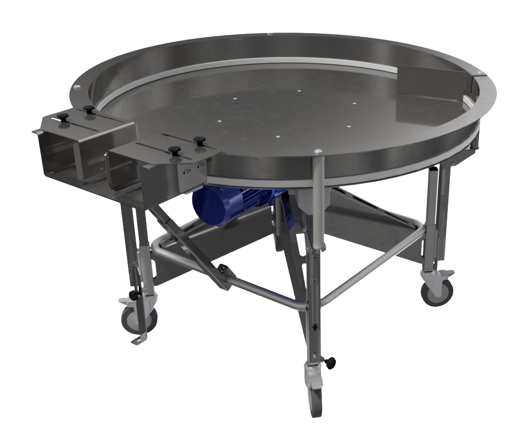 tavoli rotanti fungono da polmone di accumulo o smistamento dei prodotti sfusi o confezionati.